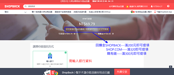 [可提領]當你的回饋金達到200元之後,你就可以跟shopback申請要付款。